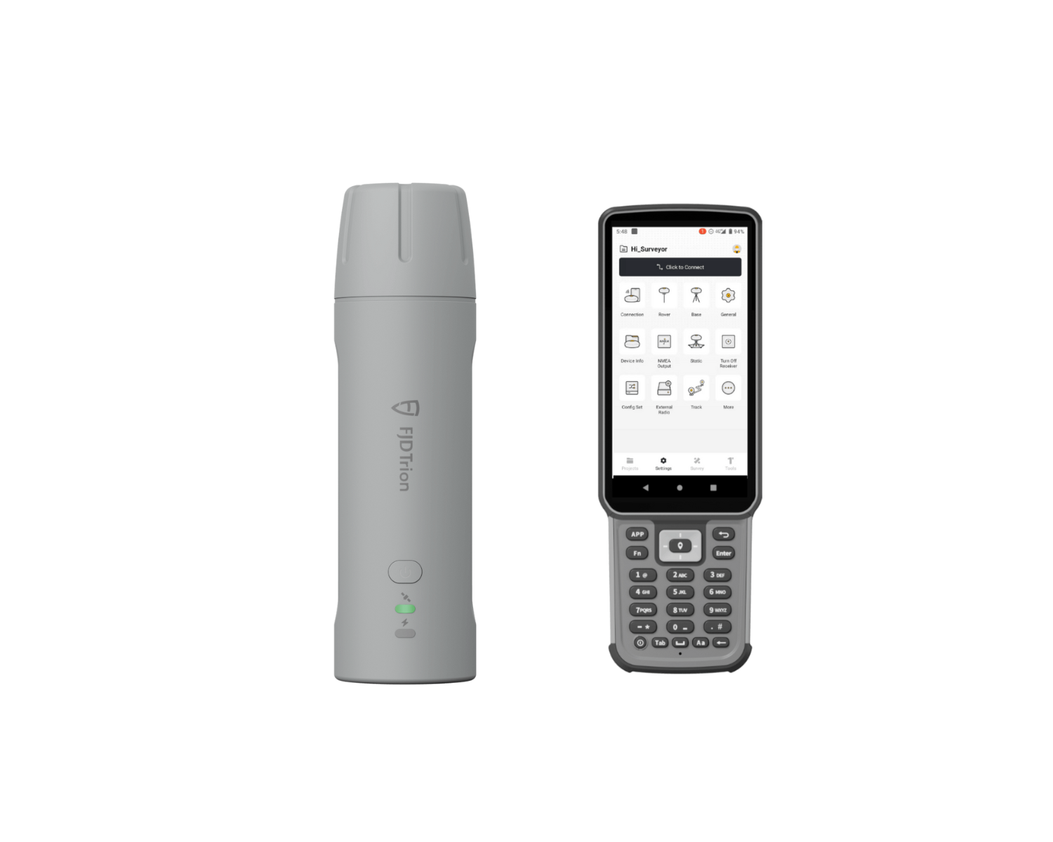 - V4e Pro is designed for handheld operation and features tilt compensation and a built-in laser rangefinder, allowing users to measure hard-to-reach or obstructed points without leveling the pole.
